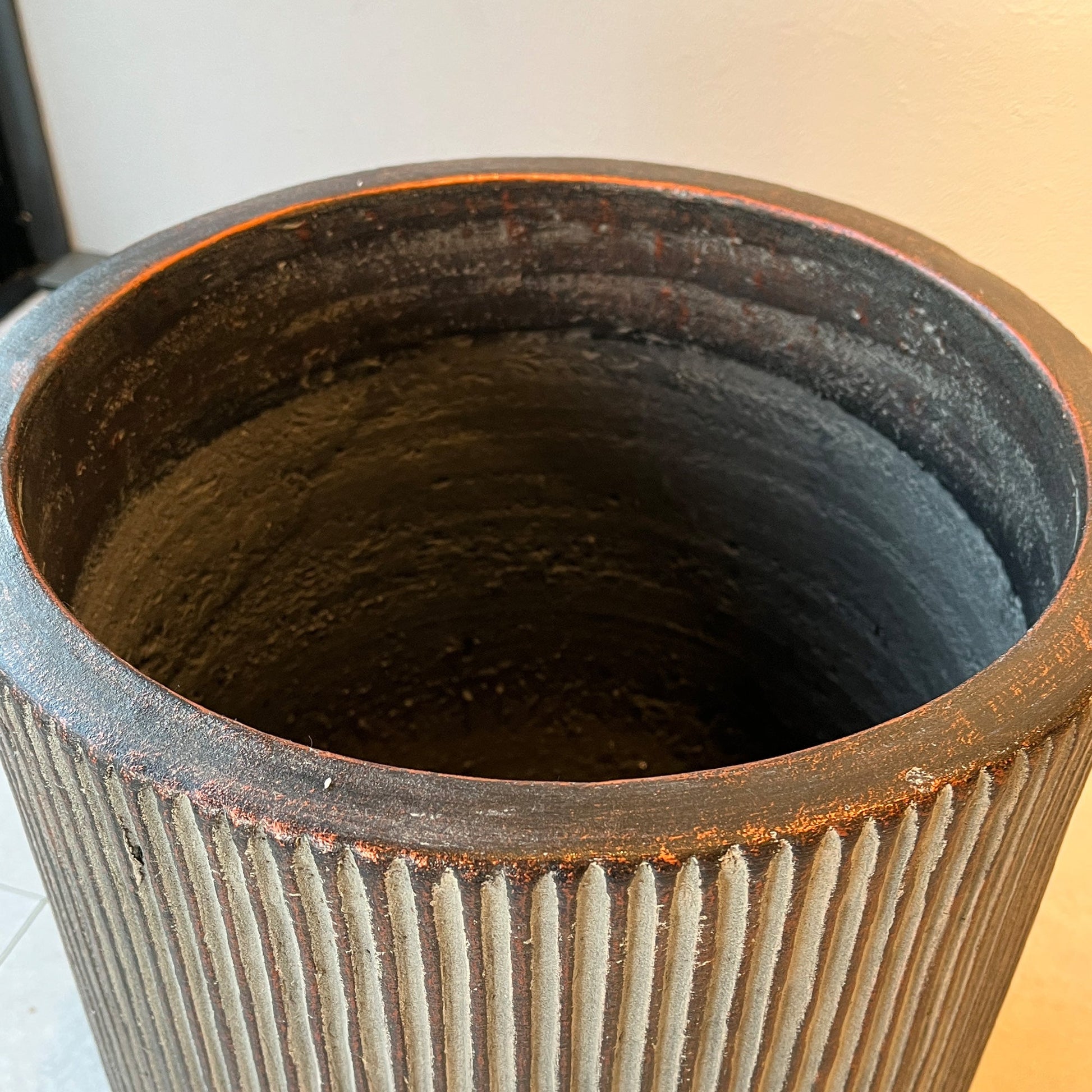 高級感あふれるデザインが特徴のチャコールストライプポット。落ち着いたチャコールカラーと縦ラインのテクスチャが、空間にモダンで洗練されたアクセントを加えます。