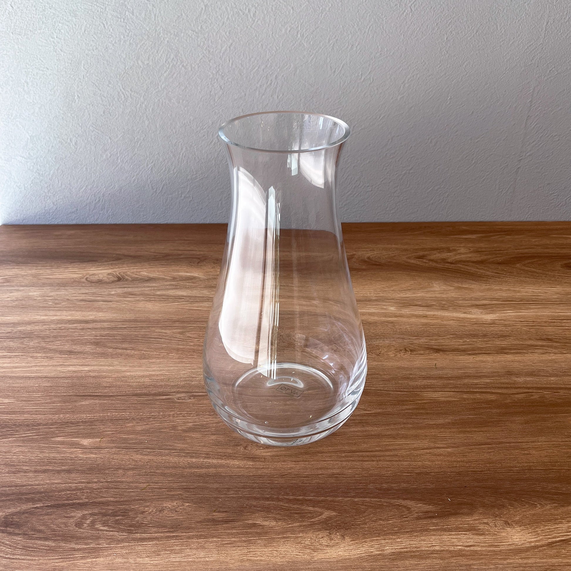 しずくのようにやさしく広がるフォルムが魅力のガラス花瓶(高さ25cm)。透明感のあるシンプルなデザインで、空間にさりげない上質感を添えます。