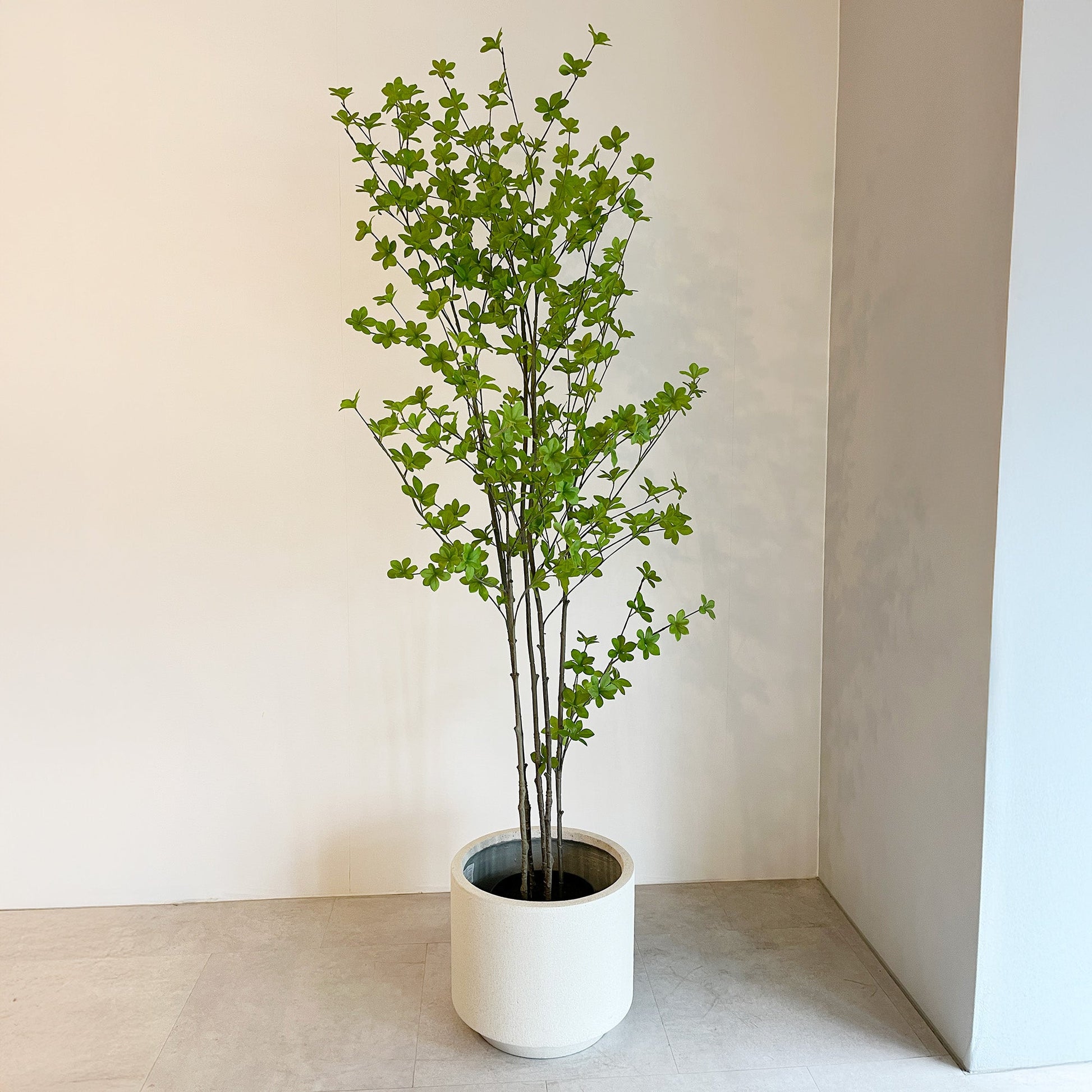 ナチュラルな風合いとシンプルなデザインが魅力の。ざらっとした質感のセメント素材が、モダンで洗練された雰囲気を演出します。ホワイトカラーが植物の緑を引き立て、どんなインテリアにも馴染みやすいのが特徴。シンプルながらも存在感があり、リビングやオフィス、店舗ディスプレイにも最適です。しっかりとした重厚感がありながら、ナチュラルな仕上がりで空間に柔らかさをプラス。幅広いスタイルにマッチします。